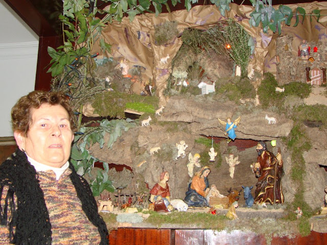 Cuando se entra en la casa lo primero que nos recibe es el olor, un aroma a campo nuestro que inunda toda la casa, eucalipto, mortiños, madroños, almoradux… después ella nos conduce hasta donde tiene instalado este año su Portal. Según nos dice, ya no puede montar el portal de antes pero en llegando estas fechas no se puede resistir.