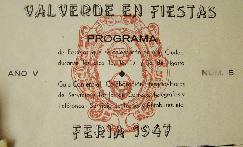 "Rebuscando" por los archivos de los que disponemos y de los que muchos de ustedes nos facilitan hoy os traemos el cartel y el programa de la feria de Valverde de 1947.