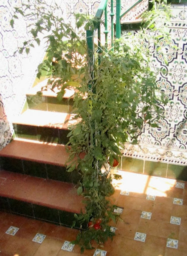 Hoy nos envían estas fotos en las que vemos como una tomatera ha crecido debajo del escalón de la azotea de una casa de la Barriada de Andalucía, hasta convertirse en un autentico árbol de tomates, sin abonos y sin poder regarse ya que nace entre azulejos.