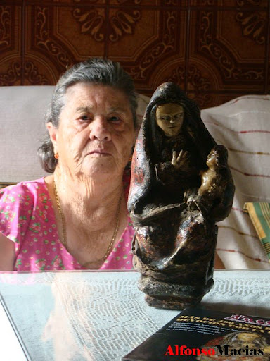 Como recoge el magnifico articulo sabre esta talla y la historia de la misma, de la periodista Ana Castilla en Facanias, Doña Manuela Doblado es una de las custodias de dicha imagen junto a sus hermanos Francisco, Bella y Juan, quien la heredaron de su padre José Dolores Doblado Caballero, cuenta que esta Virgen del Reposo ha pertenecido desde siempre a su familia y que la realizo un pastor llamado Martín Sánchez en los albores de nuestro pueblo, quien diera nombre al cabezo donde tenia su majada y donde pastaba su ganado. Cuenta también que el apellido Sánchez ha estado presente entre los suyos ya que su padre se apedillaba de tercero Sánchez.