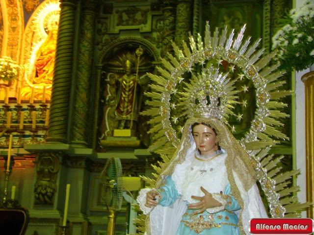 Hoy os mostramos imágenes inéditas de esta talla ya que ha sido bajada para limpiarla y vestirla de limpio con una saya bordada por Pepa Morcillo.
