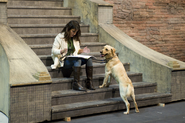 Durante los ensayos o la representación no para, desde que da las órdenes al responsable de sala para que el público pase a ocupar sus asientos hasta que cae el telón y se apagan las luces.
