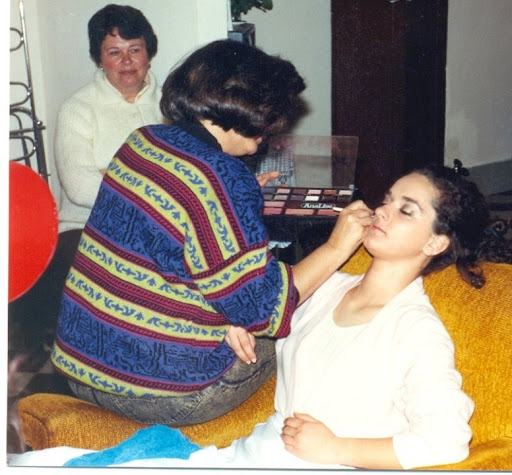 Se comienza por el maquillaje, para luego ir colocando las distintas partes del traje como muestran las fotos correspondientes al año en que fue Rocío Mantero Medina.