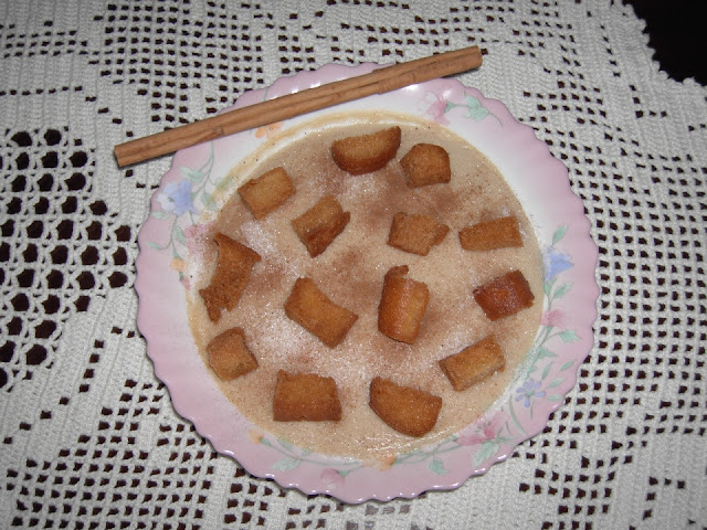 Aunque consultando otros cocineros nos comentan que hay muchas versiones, en lugar de hacerlas con leche se hacen con agua, añadiéndole la leche en el momento de servirse etc Que aproveche…