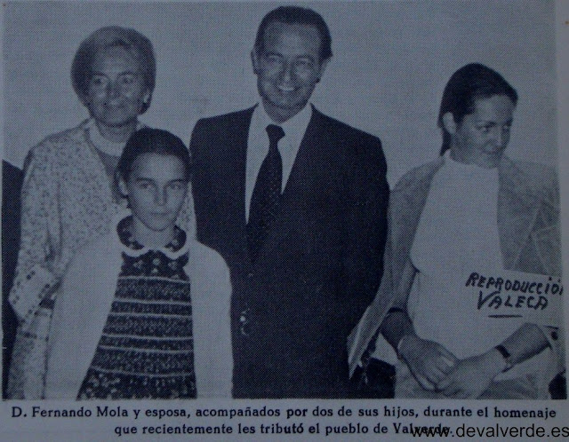 Aquello fue debido en gran parte a las gestiones realizadas por D. Fernando Mola desde su cargo como Director General de la Vivienda en Madrid. Valverde agradecido le brindo un gran homenaje y le dedico la plaza que lleva su nombre. Esta es su historia.