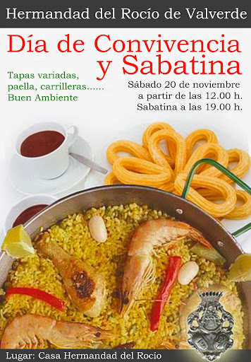 El próximo sábado día 20 de noviembre desde las 12’00h en la casa Hermandad los rocieros tendrán su día de convivencia con motivo de la Sabatina en honor a su Titular la Santísima Virgen del Rocío que se rezara a partir de las 7 de la tarde.