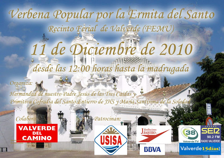 En esta verbena, que empezará a las 12'00horas y hasta la madrugada, tendremos todo tipo de tapas frías y calientes, repostería popular, café y bebidas de todo tipo, orquesta por la tarde, música dj's, sorteos de varios artículos, un cabezal de caballo con mosquero valorado en más de 300€ donado por la firma valverdeña Sport y Equitación S.L., un juego de cuchillos de primerísima calidad, un wog de cocina, una vajilla todo donado por la sucursal de Valverde de la entidad BBVA. Venta de camisetas de "La Obra de un Pueblo".
