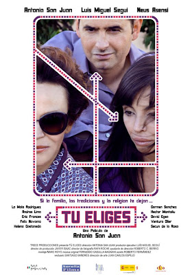 Tú eliges es una comedia realista y actual con pinceladas dramáticas. A lo largo de un solo día se cruzan las vidas de varios personajes de distintas clases sociales; desde la mujer en torno a los 50 años que vive aún en la adolescencia, a la señora millonaria que imparte charlas sobre el Feng-Shui buscando el rastro de un hijo, pasando por una estrella del pop, un actor que intenta medrar o un director de escena egocéntrico.