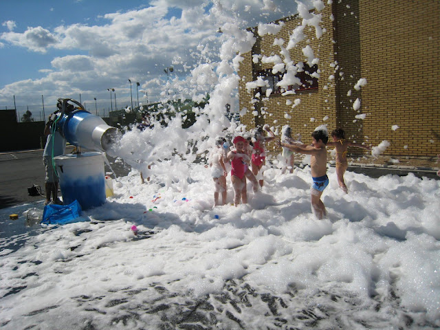 Los alumnos de los talleres extraescolares de psicomotricidad, multideportiva y baile, que durante el curso escolar se imparten en los centros educativos y que pertenecen al “Programa Municipal Deporte y Salud en Valverde” celebraron ayer la clausura de los talleres con la habitual FIESTA DEL AGUA.