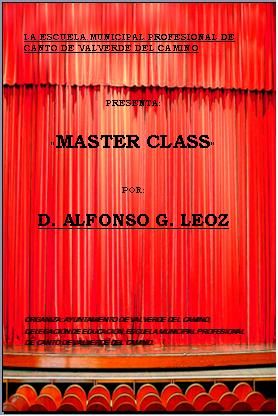 Estamos de enhorabuena, del 14 al 16 de mayo tendremos el privilegio de asistir al curso de canto que impartirá en nuestra Escuela D. Alfonso G. Leoz, el mejor profesor de canto de nuestro país y manager de cantantes como Carlos Álvarez, Jorge de León y Rocío Ignacio. El curso se dividirá en tres Master Class cuyos objetivos serán: