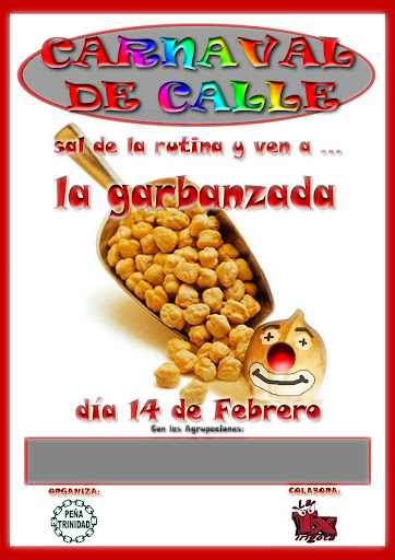 Aunque aun no nos han confirmado las agrupaciones que los probaran, si es seguro (que no oficial) que el día de los enamorados, en este caso del carnaval podamos probar los garbanzos de la Garbanzá, como siempre en la Peña Trinidad organizada por Txirigota.