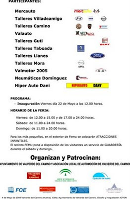 La empresas valverdeñas que participaran en esta octava edición son: Talleres Villadeamigo, Mercauto, Talleres Camino, Valauto, Talleres Guti, Talleres Tabeada, Talleres Llanes, Talleres Mora, Valmotor 2005, Neumáticos Domínguez e Hiper Auto Dani.