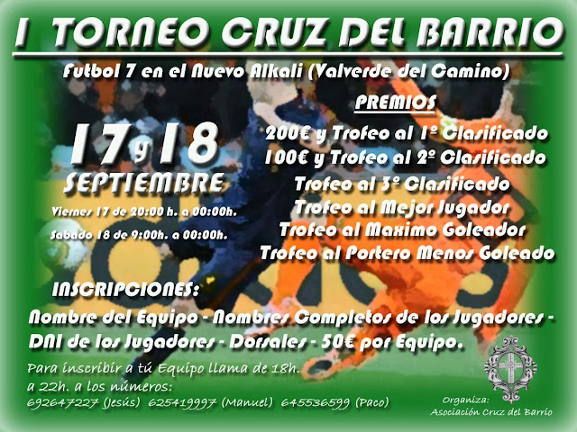 Durante los próximos días 17 y 18 de septiembre, tendrá lugar en el Estadio Nuevo Alkali, el I Trofeo de Fútbol 7 Cruz del Barrio, organizado y a beneficio de la Asociación Cruz del Barrio.