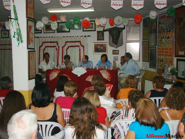 Este importante acto taurino organizado por la Peña Femenina ha contado con la participación de: D. Tomas Prieto de la Cal en representación de su madre Dª Mercedes Picón (Ganadera), Dª. Inmaculada Martos (veterinaria taurina), D. Anabel Moreno (Presidenta de la Real Maestranza de Sevilla), Ha moderado el acto D. Javier García Baquero (crítico taurino).