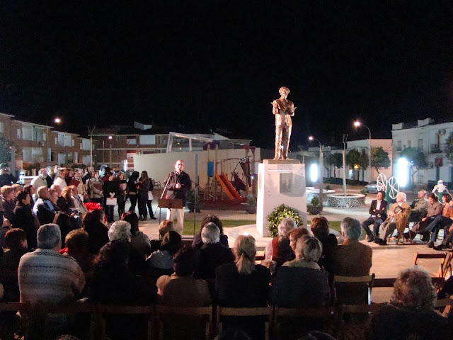 Una corona de laurel, fue depositada por la concejala de memoria y la concejala de cultura y el autor Laureano Mora Cuajares pronuncio unas palabras a modo de agradecimiento.