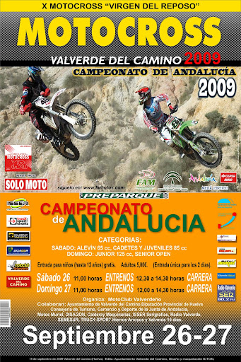 El próximo fin de semana 26 y 27 septiembre de 2009, se celebrará el campeonato de Andalucía de Motocros en Valverde estos son los horarios del mismo.