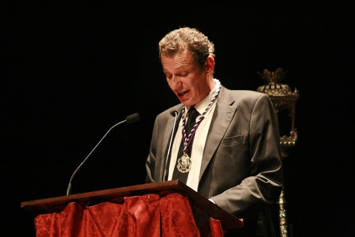 D. MANUEL VAZQUEZ SEGOVIA (Cruz de Guía de los Nazarenos Blancos), ha sido el encargado de pregonar nuestra Semana Mayor con un magnifico pregón donde hizo un recorrido por nuestra semana santa desde el corazón, el valverdeñismo y el conocimiento y la emoción que da estar 25 años portando la cruz de Guía de la Hermandad de los Blancos, pregón que llego a los muchos cofrades que se dieron cita en el Teatro Municipal.