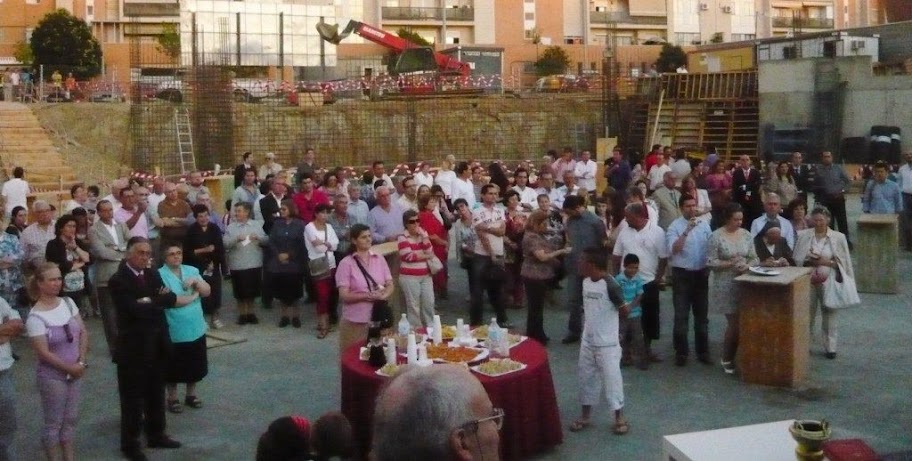 A las 21 horas del viernes, 18 de Junio, Mons. José Vilaplana Blasco, procedió a la bendición y colocación de la primera piedra de la parroquia “Beata Sor Eusebia”, ubicada en la intersección de las calles Valdelarco e Hinojales de la capital. Junto a nuestro obispo José Vilaplana y a nuestro Emérito, Ignacio Noguer, han acudido religiosas salesianas de Valverde del Camino, comunidad a la que perteneció la beata Eusebia Palomino, titular de la parroquia, así como personalidades civiles y religiosas, entre ellas el alcalde de Huelva y los técnicos encargados de la construcción. Y valverdeños que no quisieron perderse tan importante acontecimiento.
