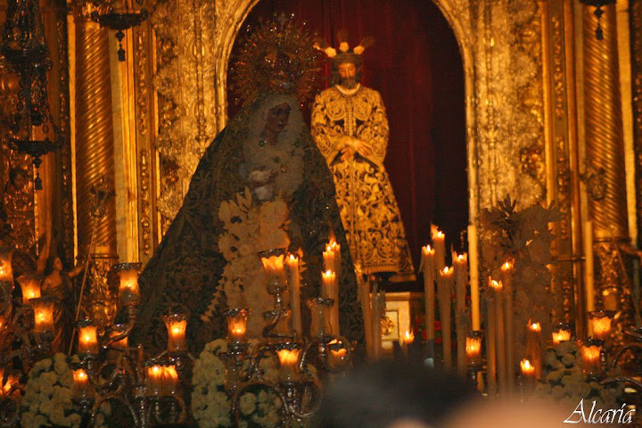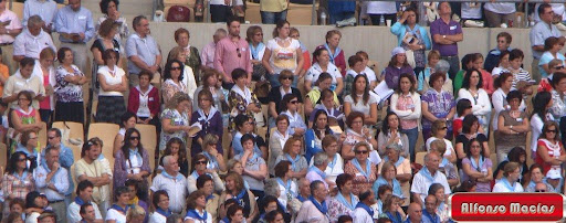 La Esperanza Macarena presidia el estrado donde se celebro la beatificación y la eucaristía y gracias a la certera colocación de la pancarta de Valverde se pudieron captar imágenes como la de la Macarena Mirando a la Virgen del Reposo, enhorabuena a todos los asistente.